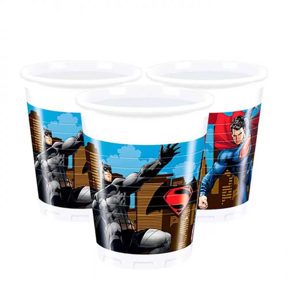 - В упаковке 8 пластиковых стаканов с героями мультфильма «Бэтмен против Супермена».