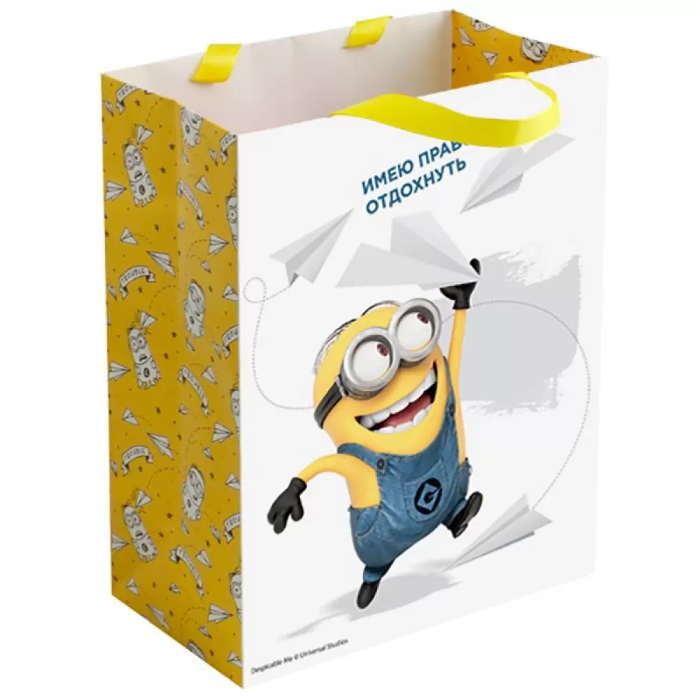 - Подарочный пакет «Миньоны» с веселым принтом украсит подарок и поднимет настроение.