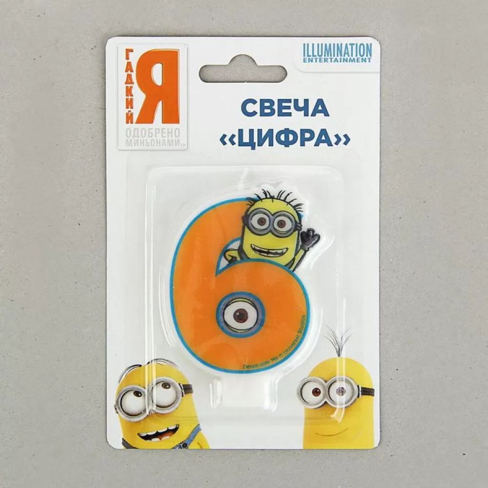 - Фигурная свеча для торта Миньон «Цифра 6» с забавным героем мультфильма «Гадкий Я» украсит торт ко Дню Рождения. Забавная свеча-миньон даже самый обычный торт легко превратит в праздничный.