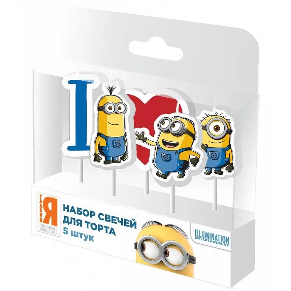 - В наборе «Миньоны» 5 фигурных свечей с держателями.