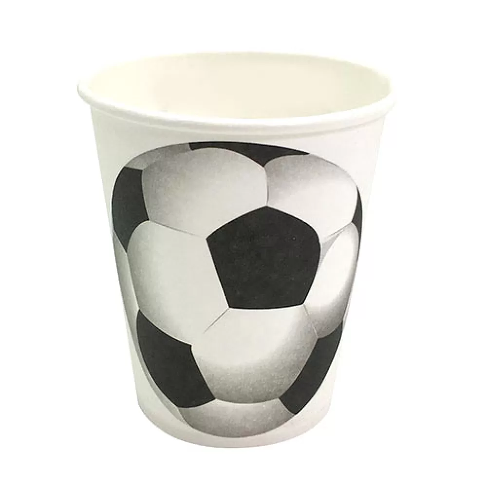 - Одноразовые стаканы «Футбол» с графичным принтом украсят праздничный стол.