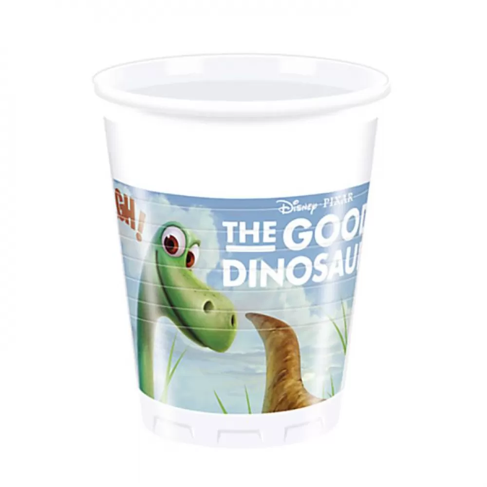 - В упаковке 8 пластиковых стаканов с героями мультфильма «Хороший динозавр».