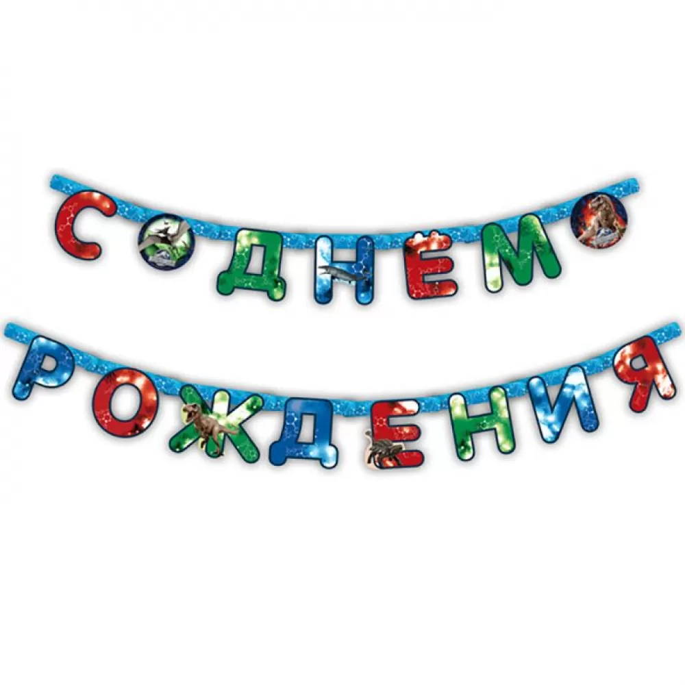 - Гирлянда «C Днем Рождения» с динозаврами из фильма «Парк Юрского периода» из бумаги.