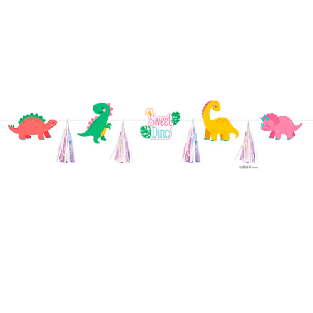 - Гирлянда состоит из 4 подвесок в форме фигурок динозавриков, 1 подвески Sweet Dino и 4 кисточек тассел.