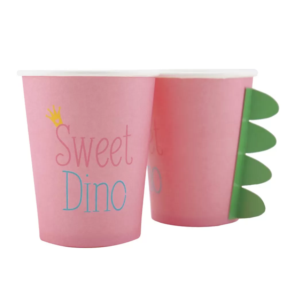 - Стаканы бумажные одноразовые праздничные Милые Динозаврики с декоративным гребнем динозавра!