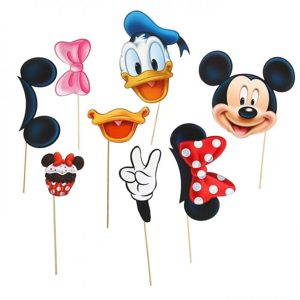 В наборе фотобутафории «Микки Маус и друзья» 8 ярких тематических картинок на деревянных шпажках. В набор входят: