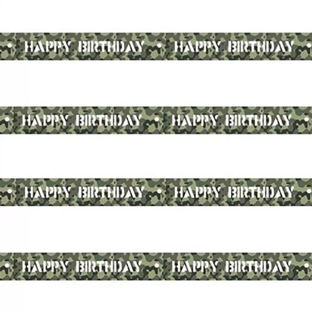 - Лента декоративная «Камуфляж Happy Birthday», длина ленты 10 метров, ширина 8 см. Материал - полиэтилен.