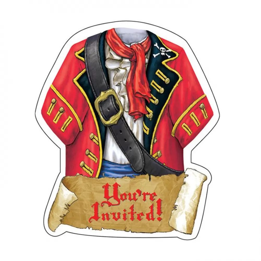 - Оригинальный дизайн в форме пиратского кафтана, обратную сторону приглашения легко подписать благодаря нанесенной разметке.