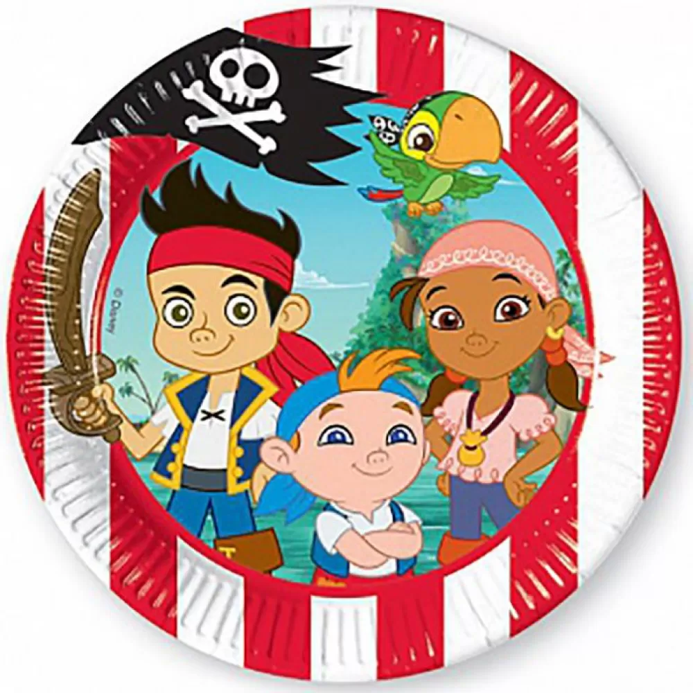 - Тарелки одноразовые бумажные Джейк и пираты Нетландии, в наборе 8 праздничных тарелок, диаметр тарелки 20 см.