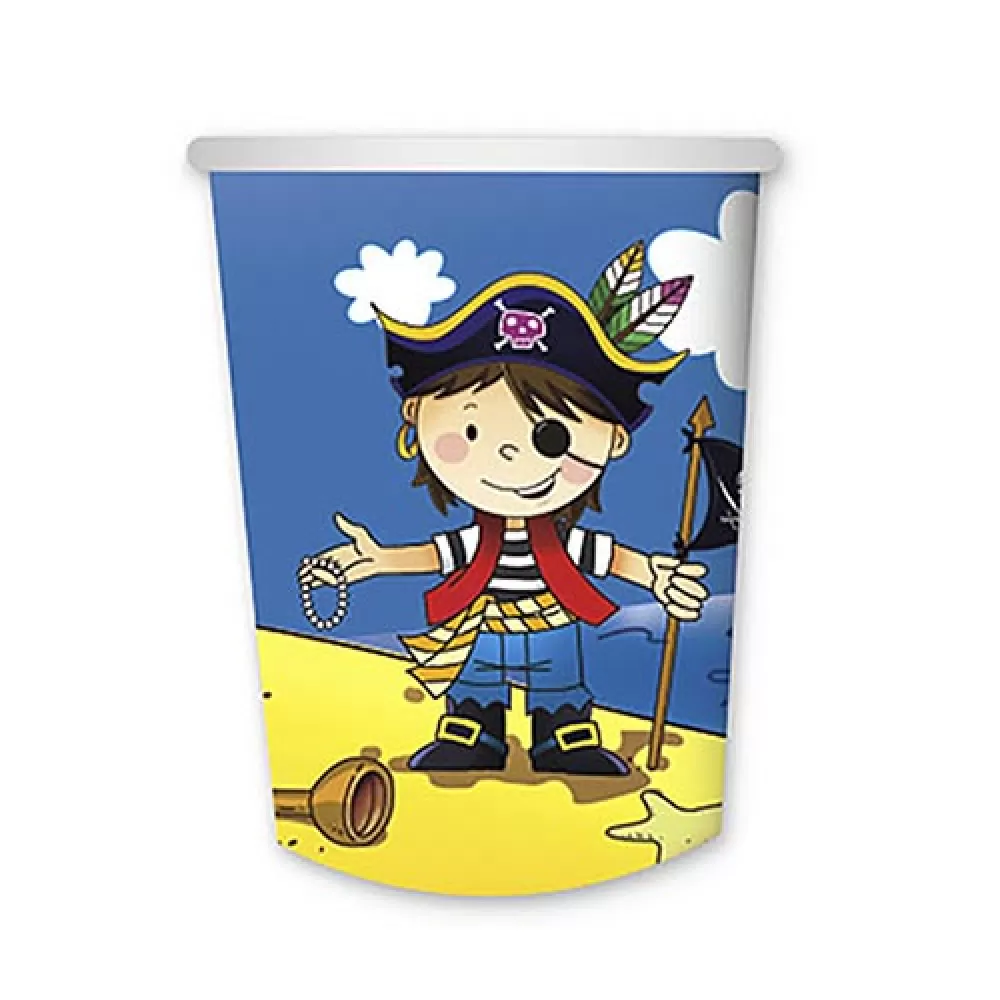 - В наборе 6 бумажных стаканчиков «Маленький пират» объемом 250 мл.