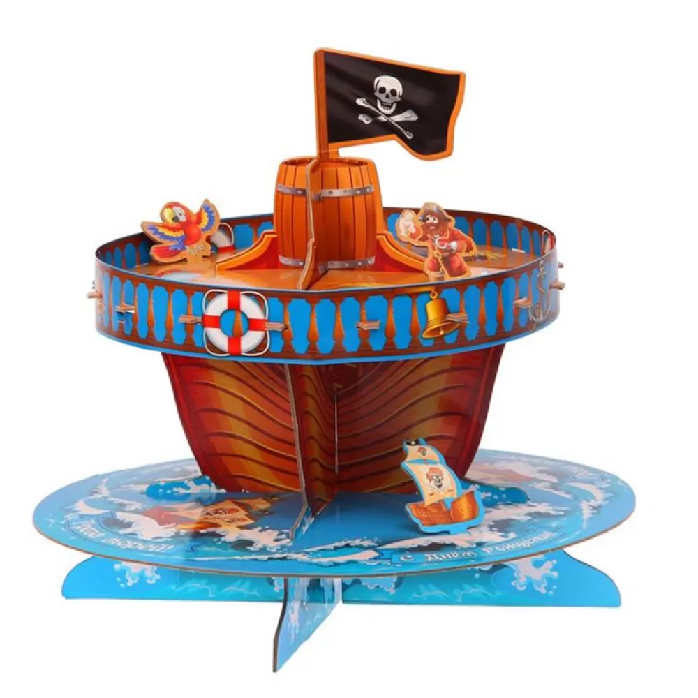 - Картонная двухъярусная пиратская подставка легко собирается.