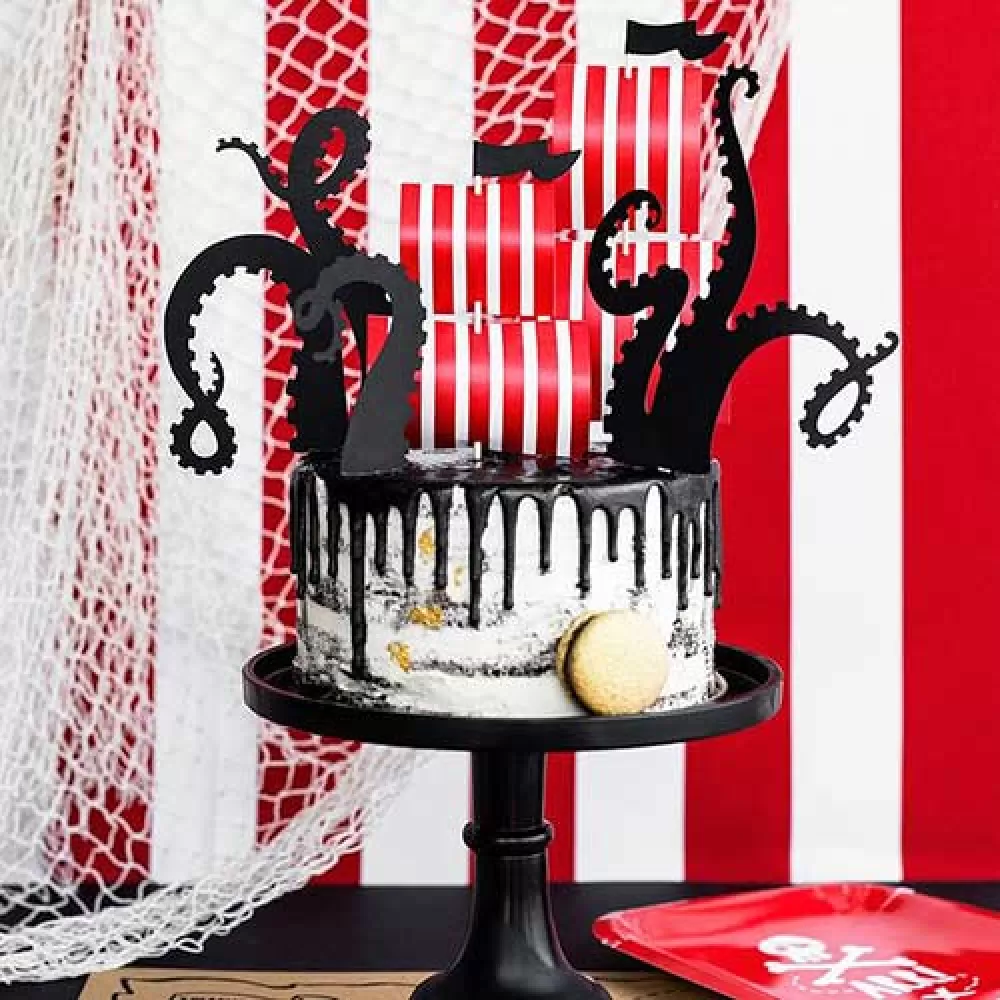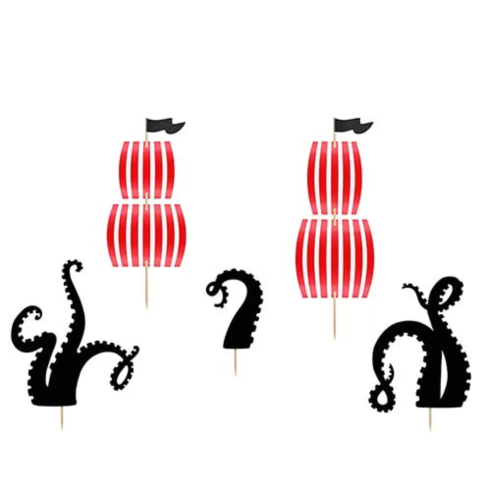 - Пираты обожают вкусно поесть! С этим набором вы сможете оформить торт в пиратском стиле. Топперы в виде пиратских кораблей и щупалец осьминога легко превратят любой торт в настоящий пиратский!