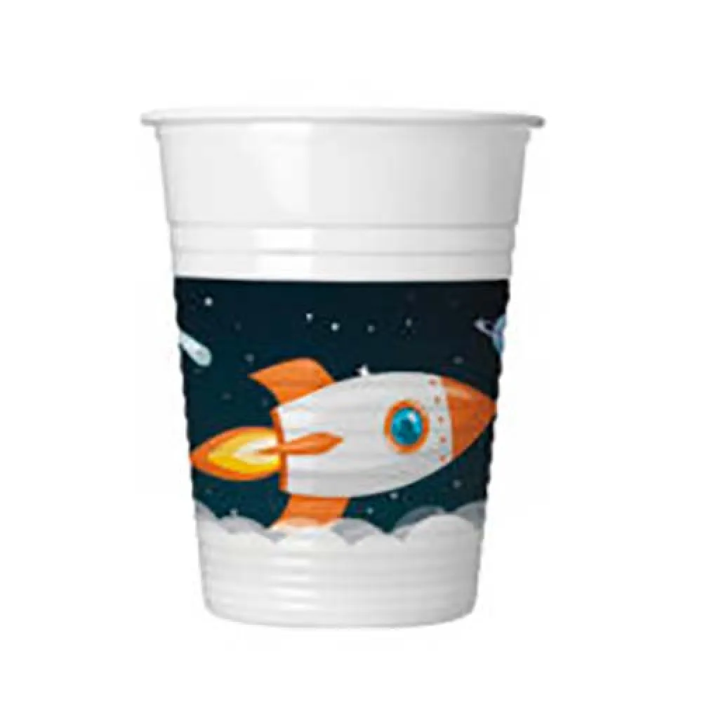 - В упаковке 8 пластиковых стаканов с планетами, кометой и ракетой для классной космической вечеринки.