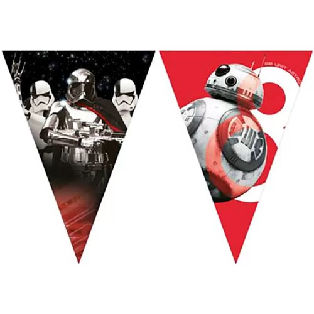 - Гирлянда-вымпелы «Звездные войны» с дроидом и штурмовиками выполнена из полиэтилена, длина гирлянды 230 см.