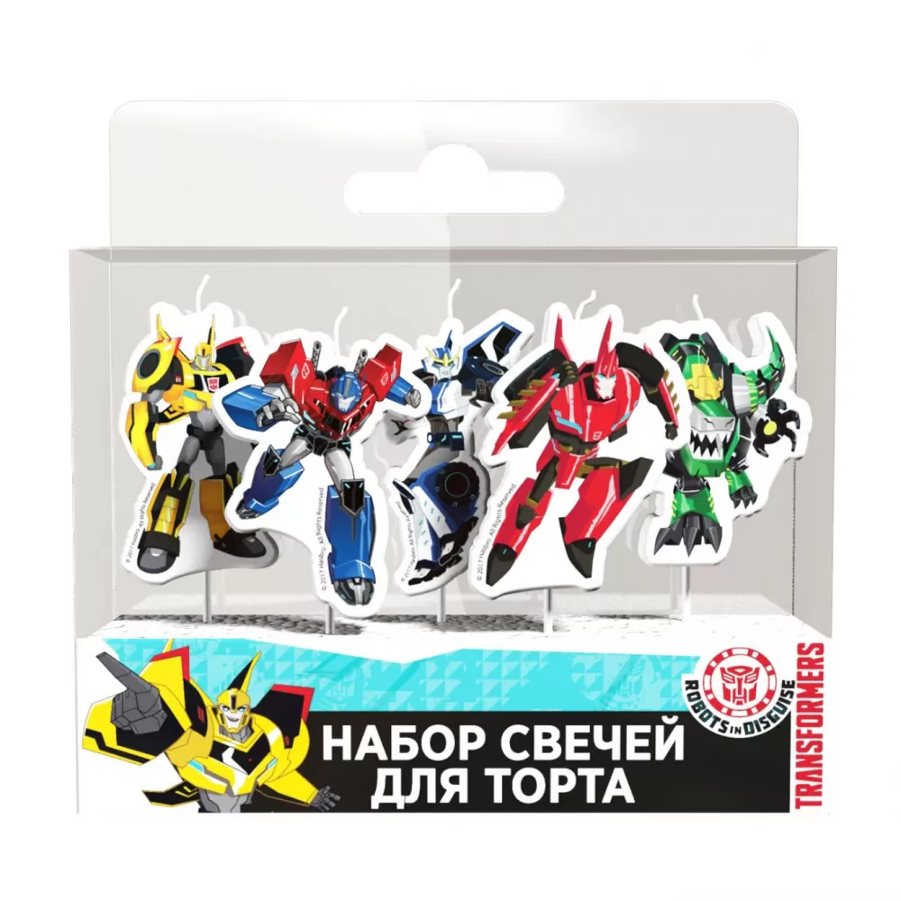 - В наборе свечей «Трансформеры» 5 фигурных свечей с держателями.