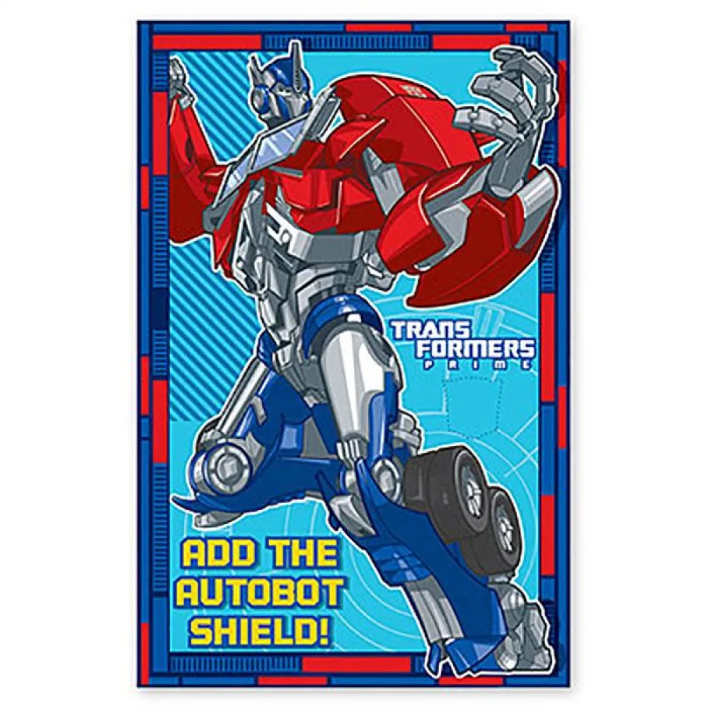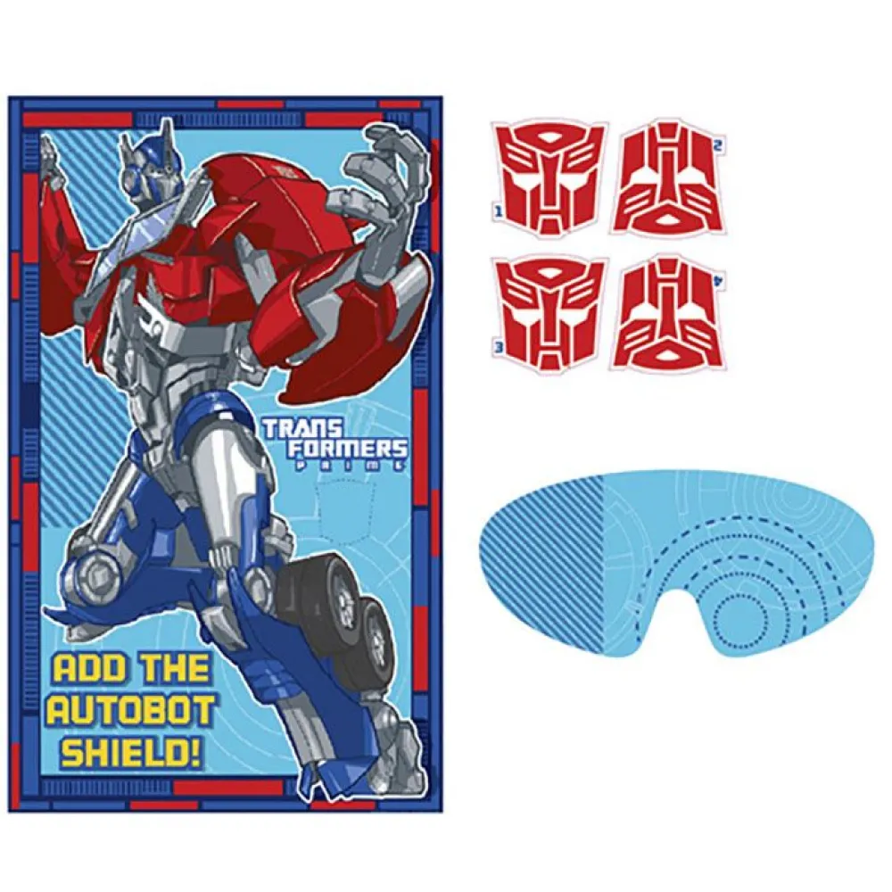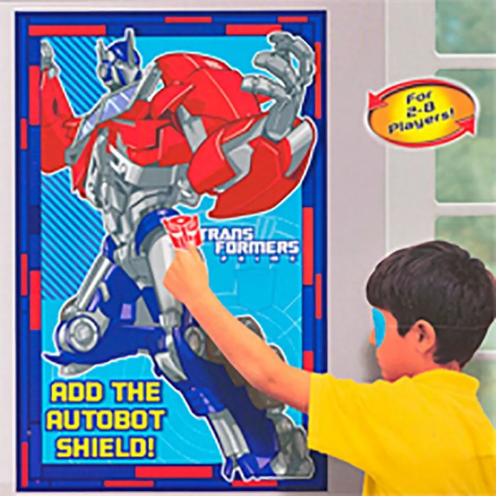 - Участникам игры необходимо вернуть Оптимусу Прайму щит автоботов. Для этого нужно закрыть глаза маской, взять наклейку-щит и разместить щит на игровом поле. Его нужно поставить на место, отмеченное пунктиром.