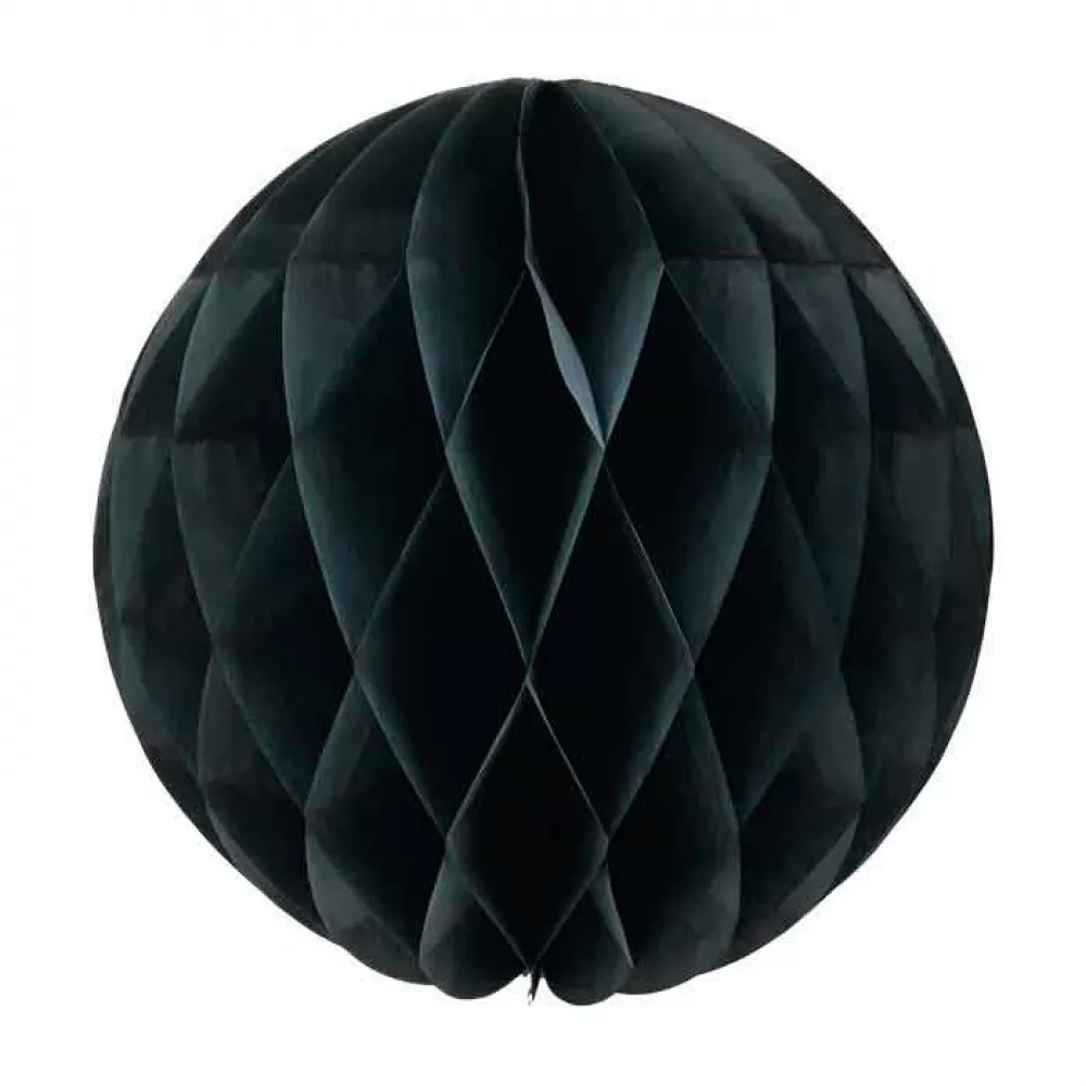 - Черный бумажный шар-сота 30 см для стильного декора праздника, фотосессии или интерьера.