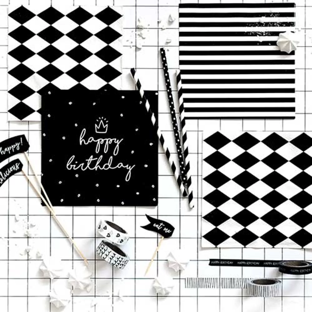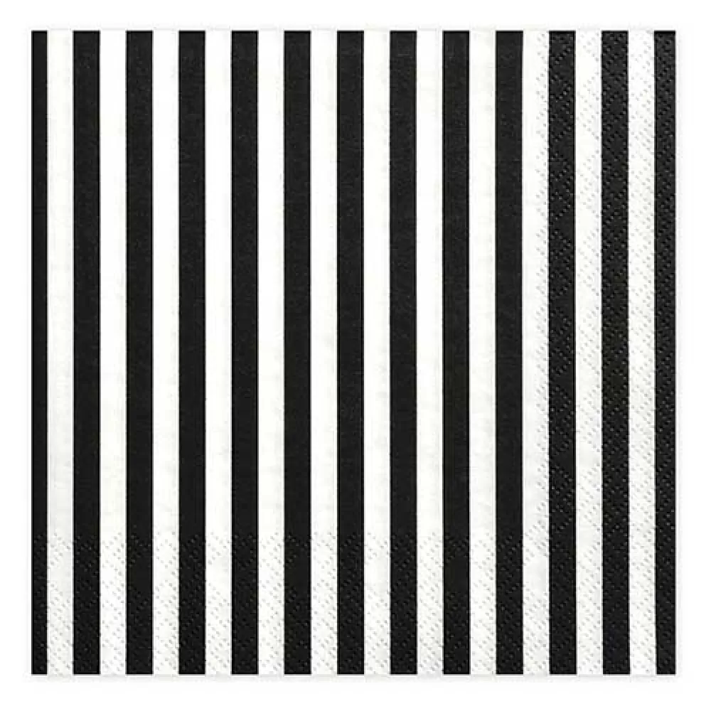 - Салфетки одноразовые в черно-белую полоску - для стильных брутальных и монохромных вечеринок.