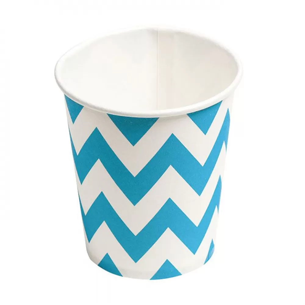 - В наборе 6 бумажных стаканов с принтом голубой шеврон.