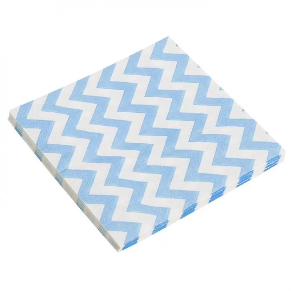 - В упаковке 20 бумажных салфеток с принтом голубой шеврон.