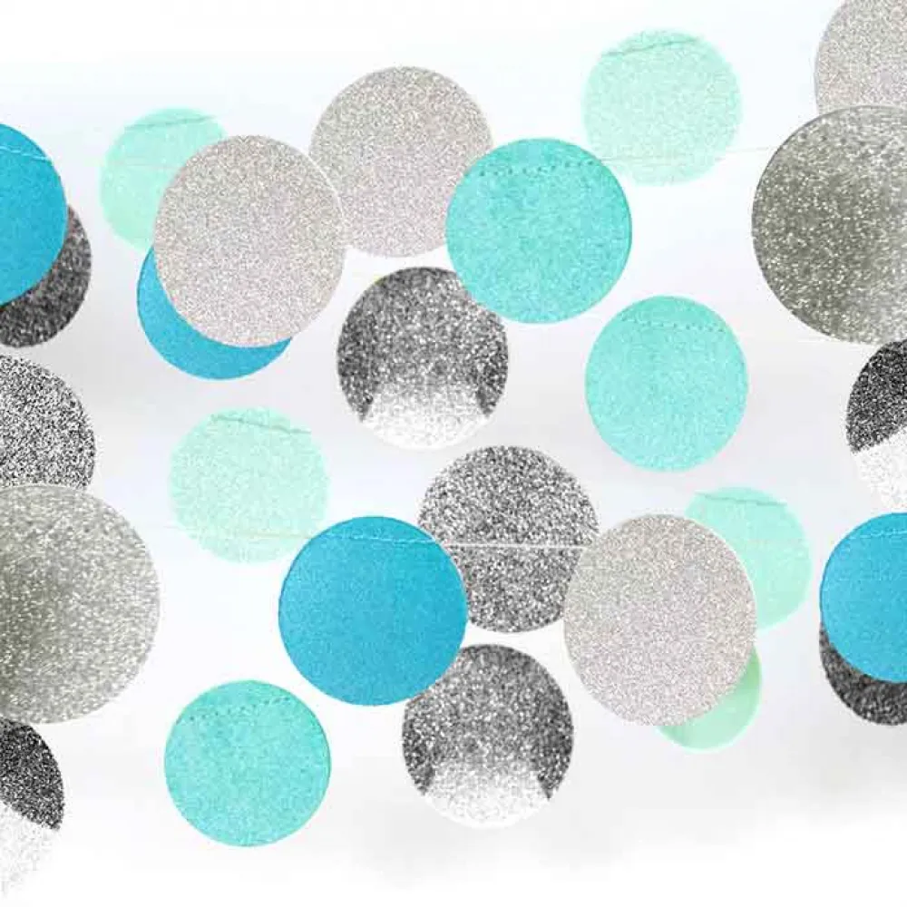 - Гирлянда «Круги микс» - серебряные, мятные и голубые круги на нити.