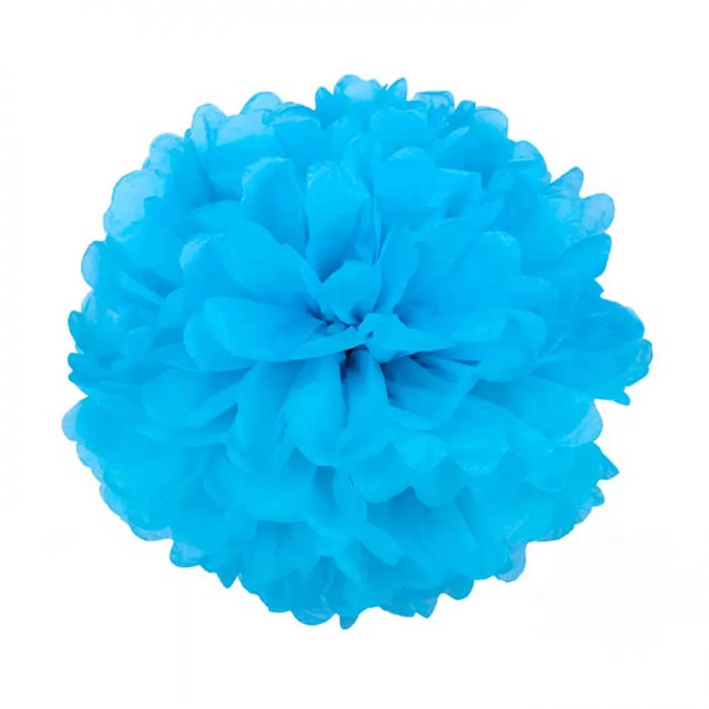 - Помпон голубой 20 см из бумаги тишью. Отличное изящное решение для украшения любых праздников.