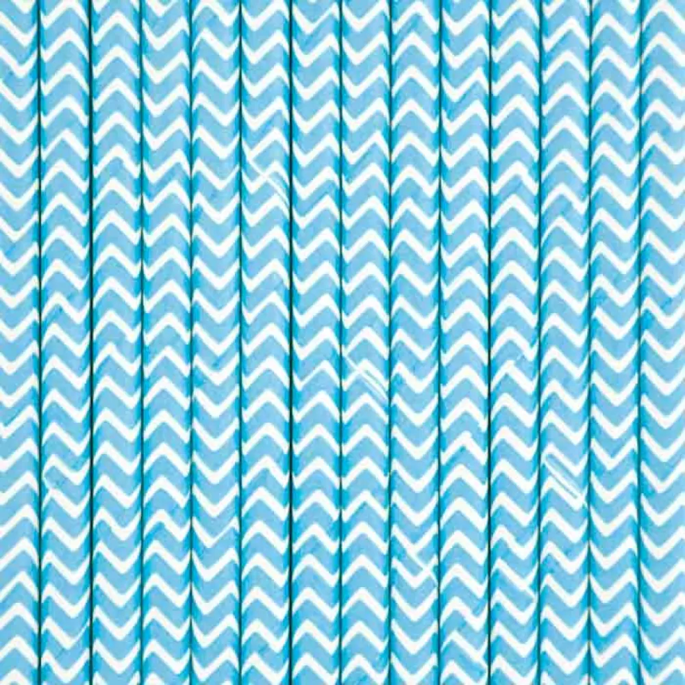 - Экологичные голубые трубочки для коктейля с рисунком шеврон выполнены из бумаги.