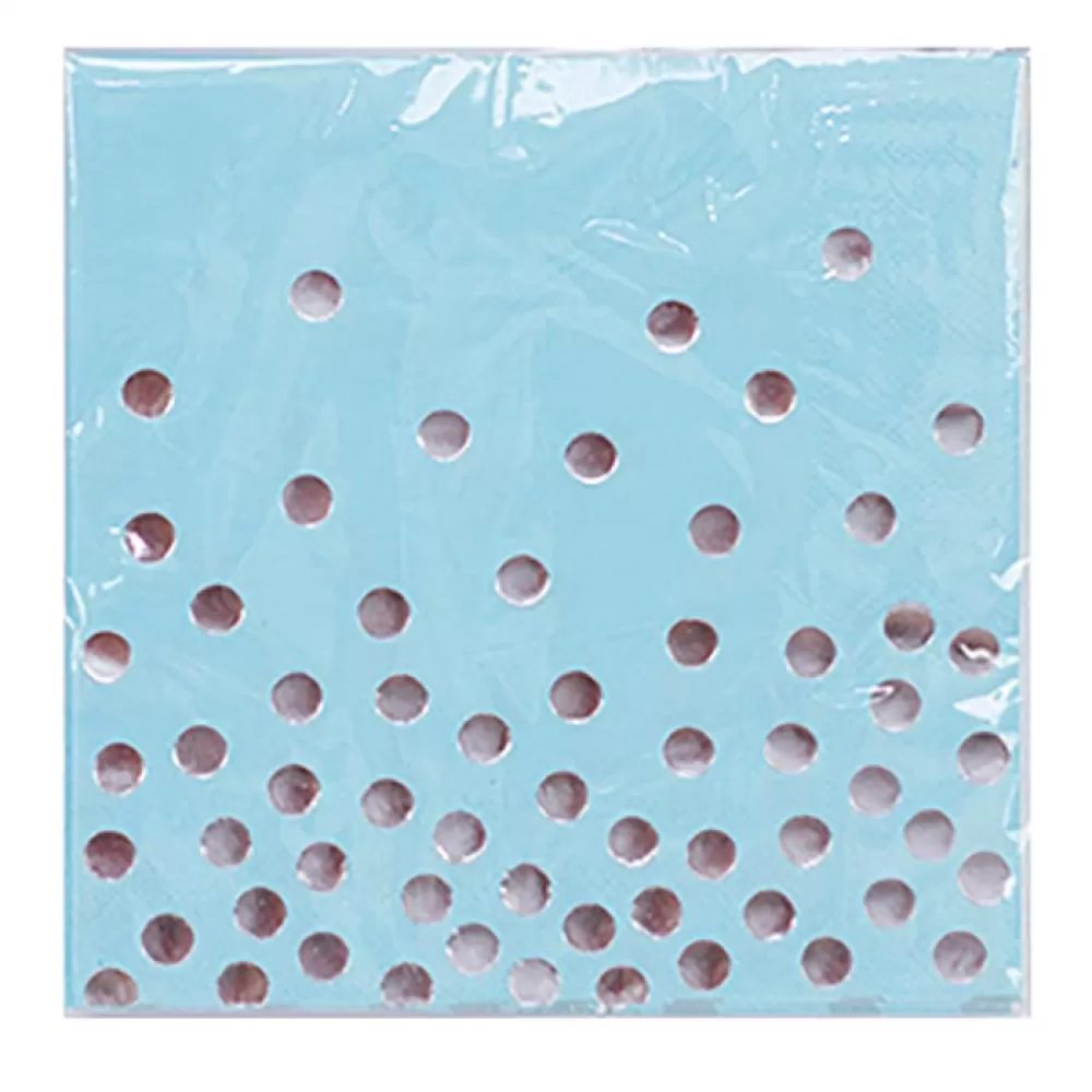 - В наборе 6 голубых двухслойных салфеток с принтом серебряный горошек.