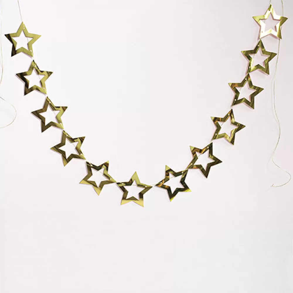 - Гирлянда-подвеска с золотыми звездами с вырубкой.