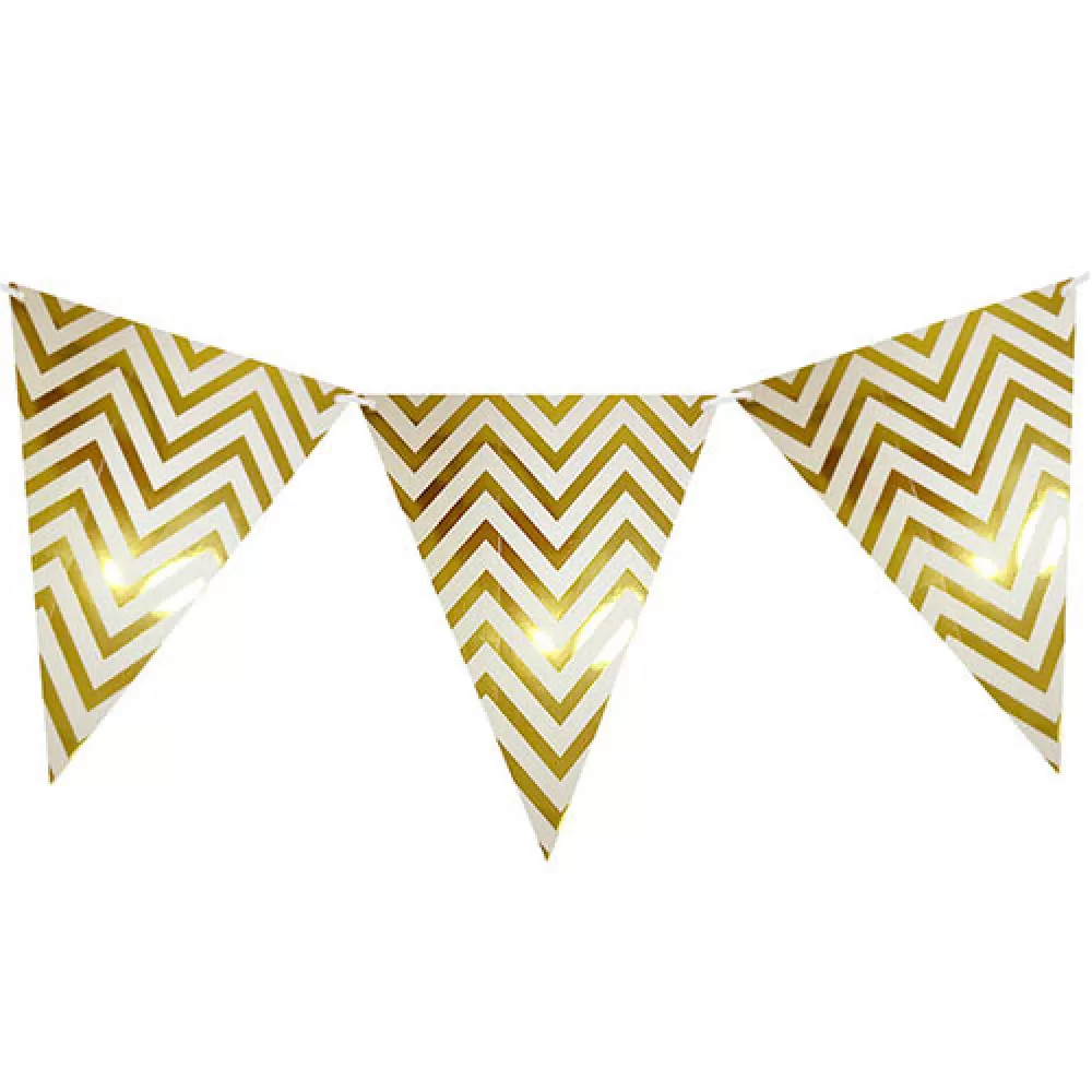 - Гирлянда с золотым принтом придаст торжественности вашему празднику. Ее удобно использовать для декорирования помещения, фотозоны, сладкого стола.
