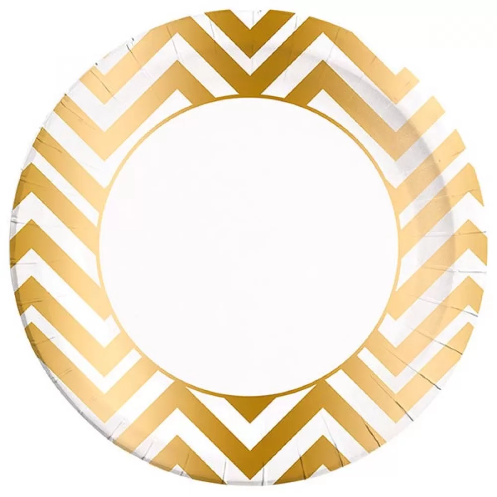 - Большие бумажные тарелки с принтом золотой шеврон.