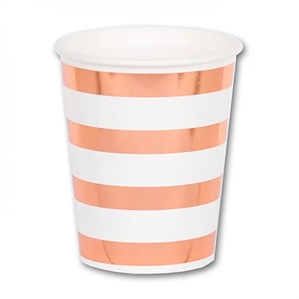 - Стаканы в полоску розовое золото бумажные фольгированные, в наборе 6 штук.