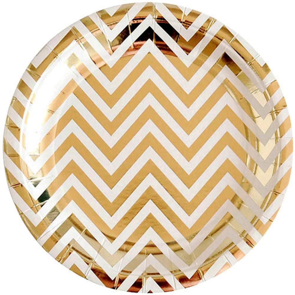 - Одноразовые тарелки для праздника Золотой шеврон, в наборе 6 бумажных тарелок диаметром 18 см.