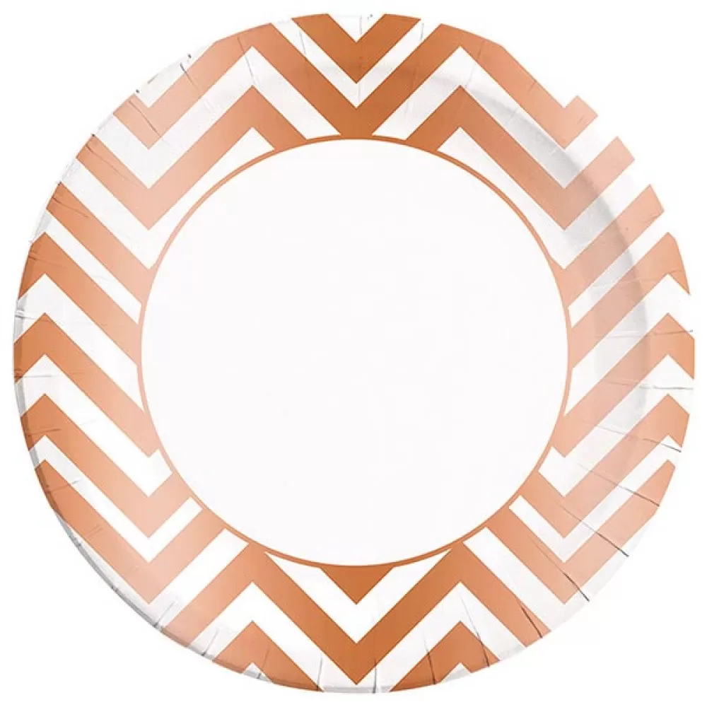 - Большие бумажные тарелки с принтом шеврон розовое золото.