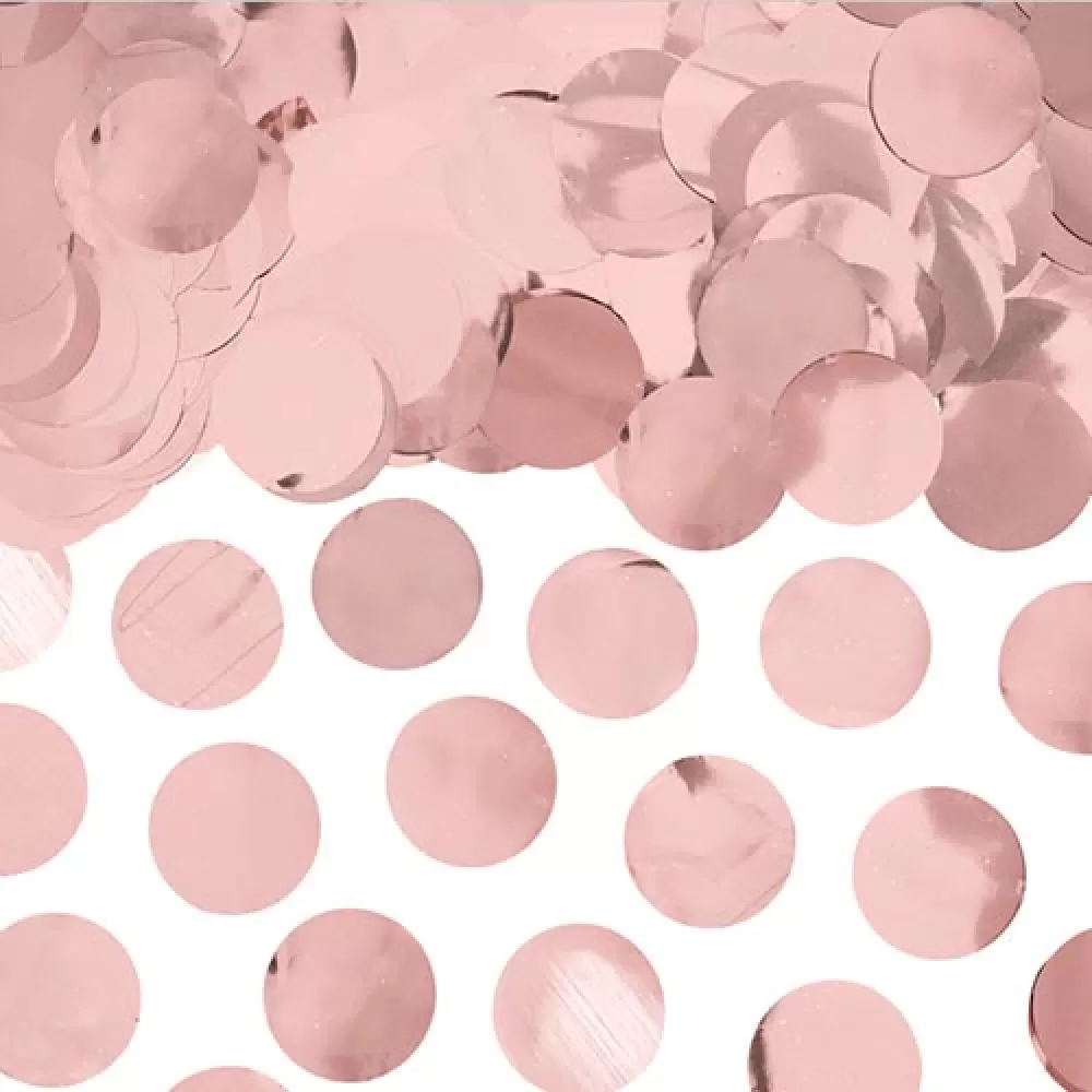 - Фольгированные круглые конфетти из тонкой полимерной пленки цвета розового золота подходят в качестве наполнителя для прозрачных воздушных шаров.