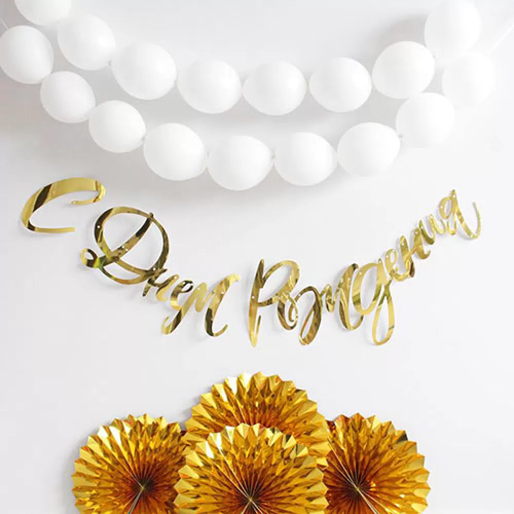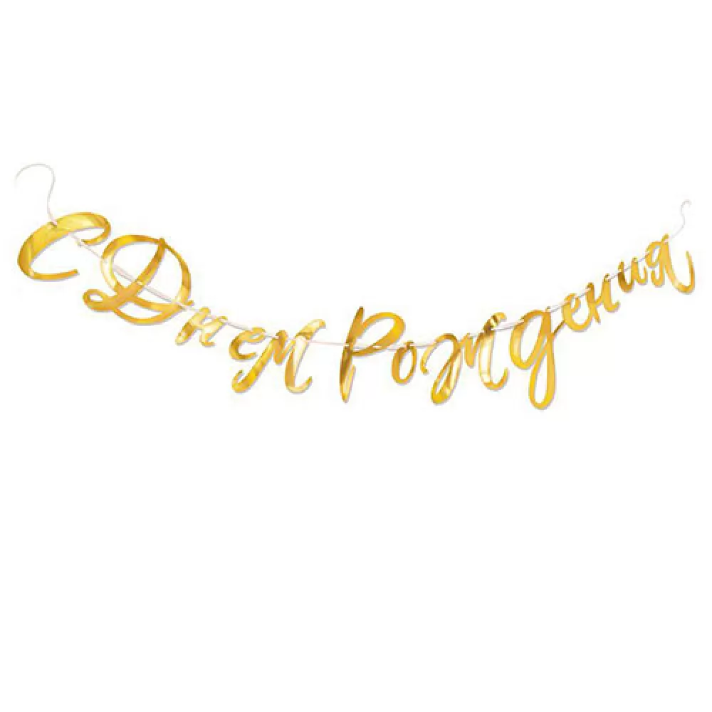 - Гирлянда-буквы "С днем рождения" фольгированная золотая