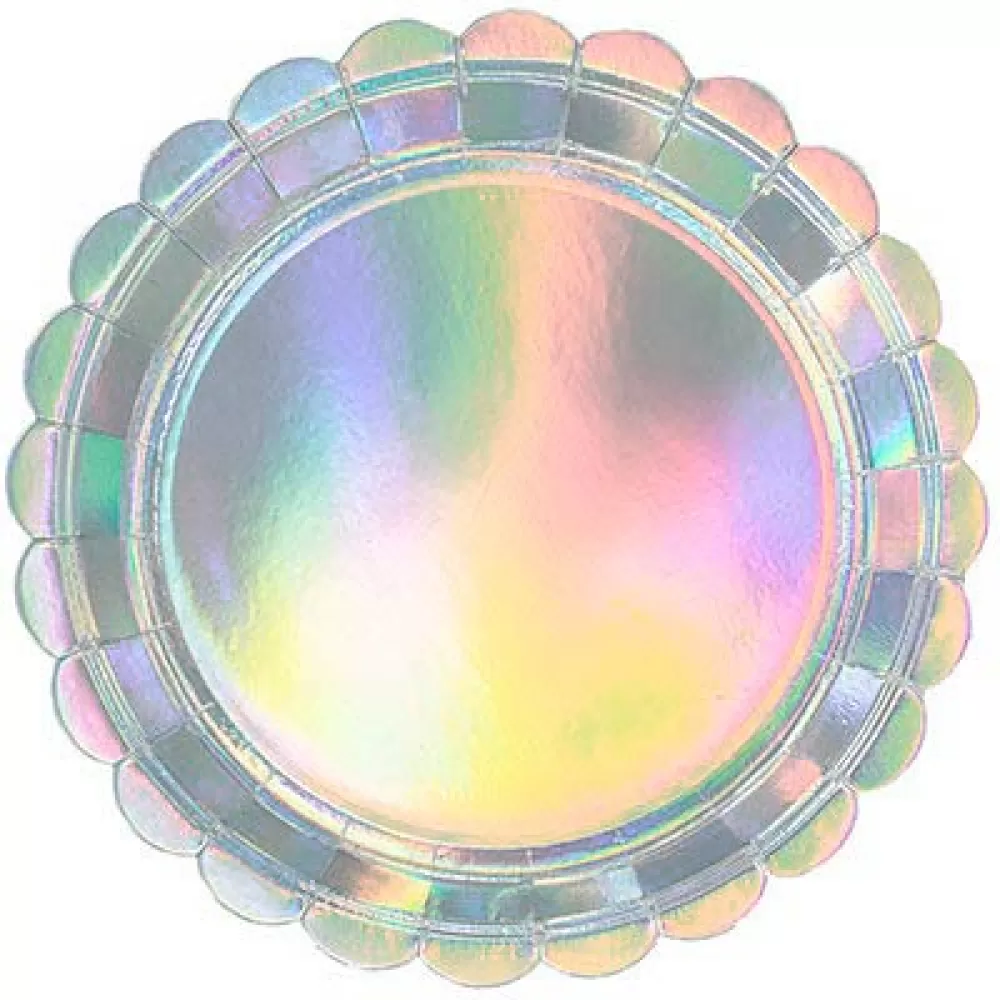 - Коллекция перламутровой бумажной посуды с удивительными переливами цветов подходит для вечеринки в стиле единорогов, праздника русалок, морской вечеринки или блеск диско-пати.