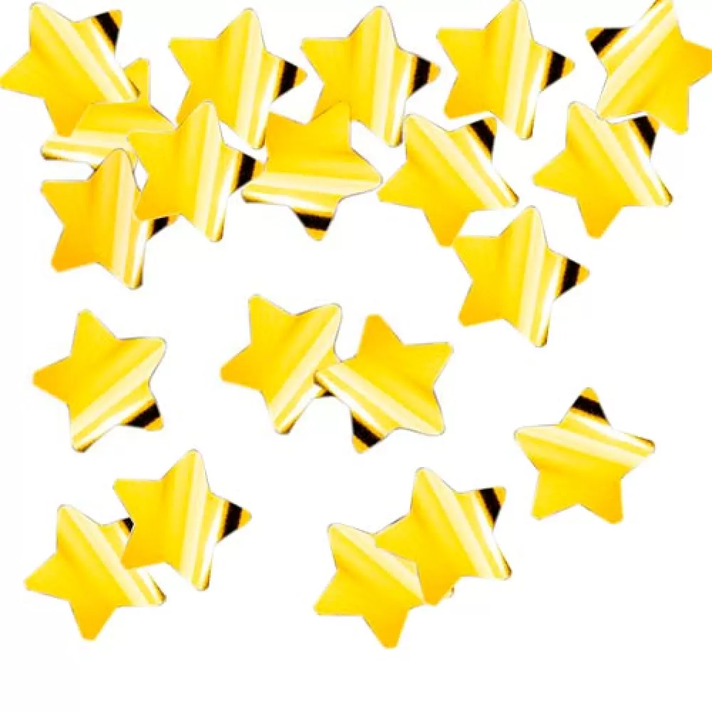 - Фольгированные конфетти в форме звезд из тонкой полимерной пленки золотого цвета подходят в качестве наполнителя для прозрачных воздушных шаров.