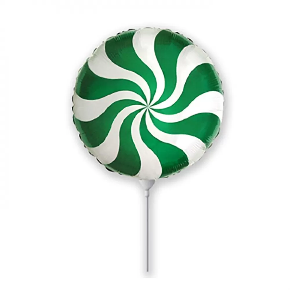 - 9-дюймовый фольгированный воздушный круглый шар-леденец с зеленым рисунком.