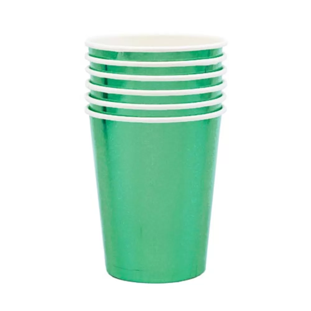 - Стаканы зеленые одноразовые бумажные фольгированные, в наборе 6 стаканов.