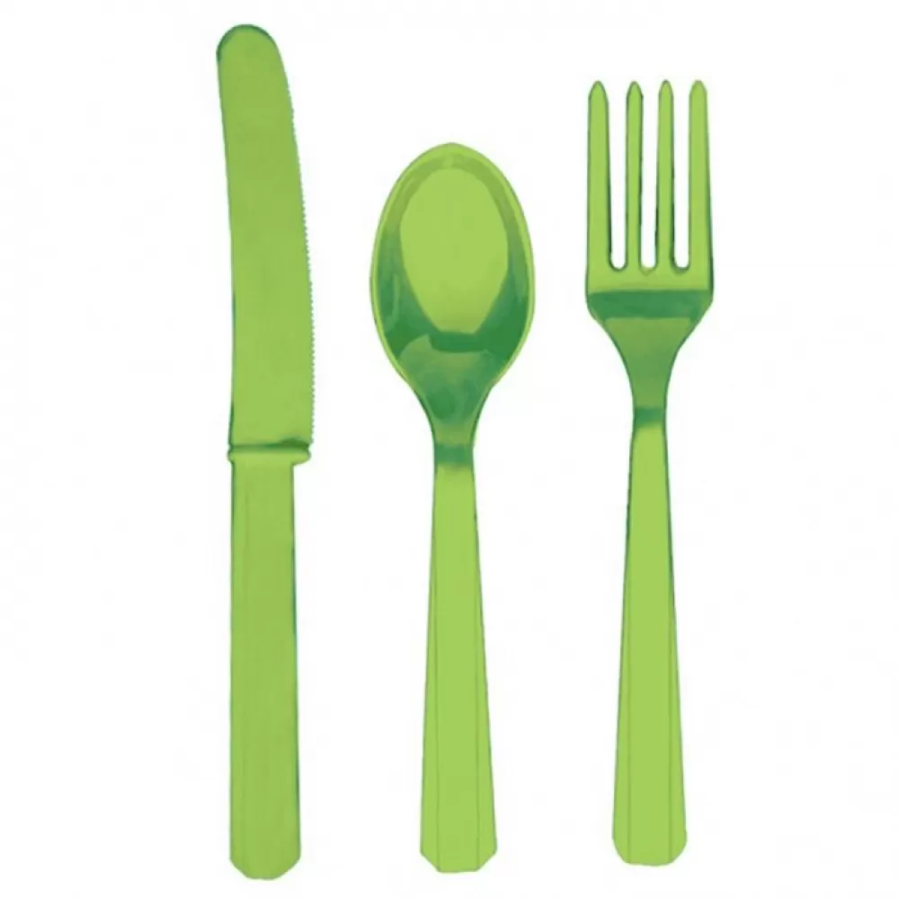 - Одноразовые зеленые столовые приборы из высококачественного пластика.
