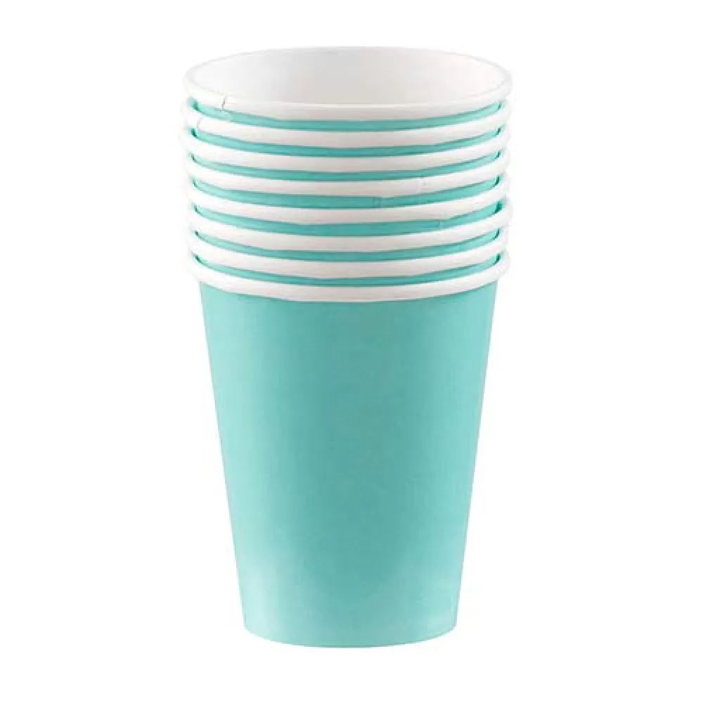 - В наборе 8 бумажных стаканов бирюзового (мятного) цвета.