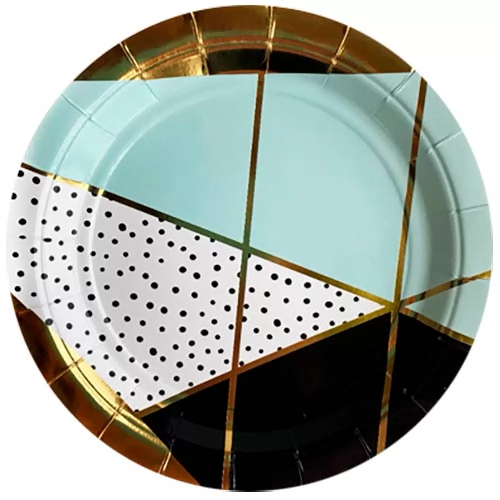 - Стильная праздничная тарелка с принтом и золотым фольгированным тиснением.