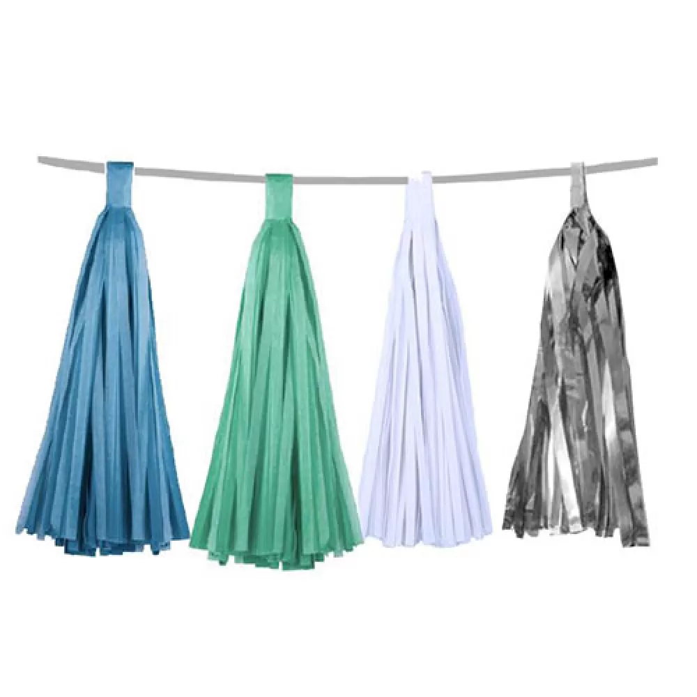 - Набор Гирлянд тассел ассорти: белый, мятный, голубой, серебро.