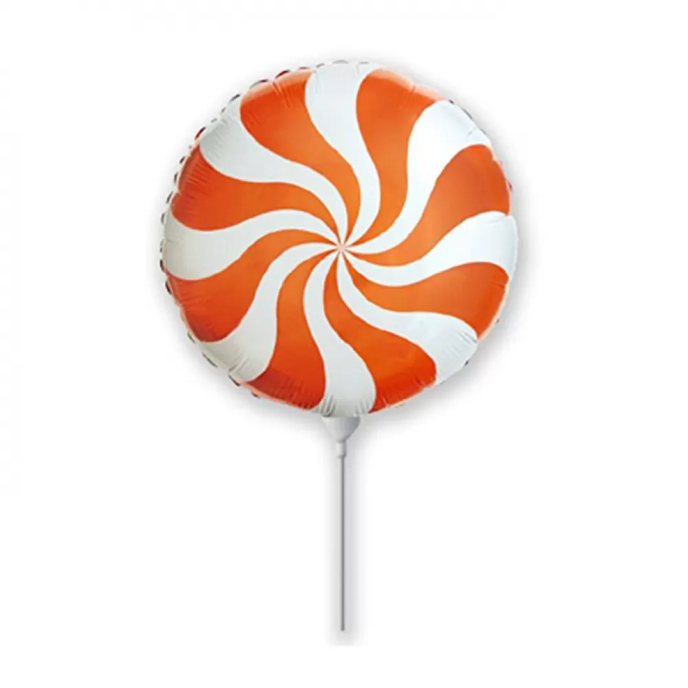 - 9-дюймовый фольгированный воздушный круглый шар-леденец с оранжевым принтом.