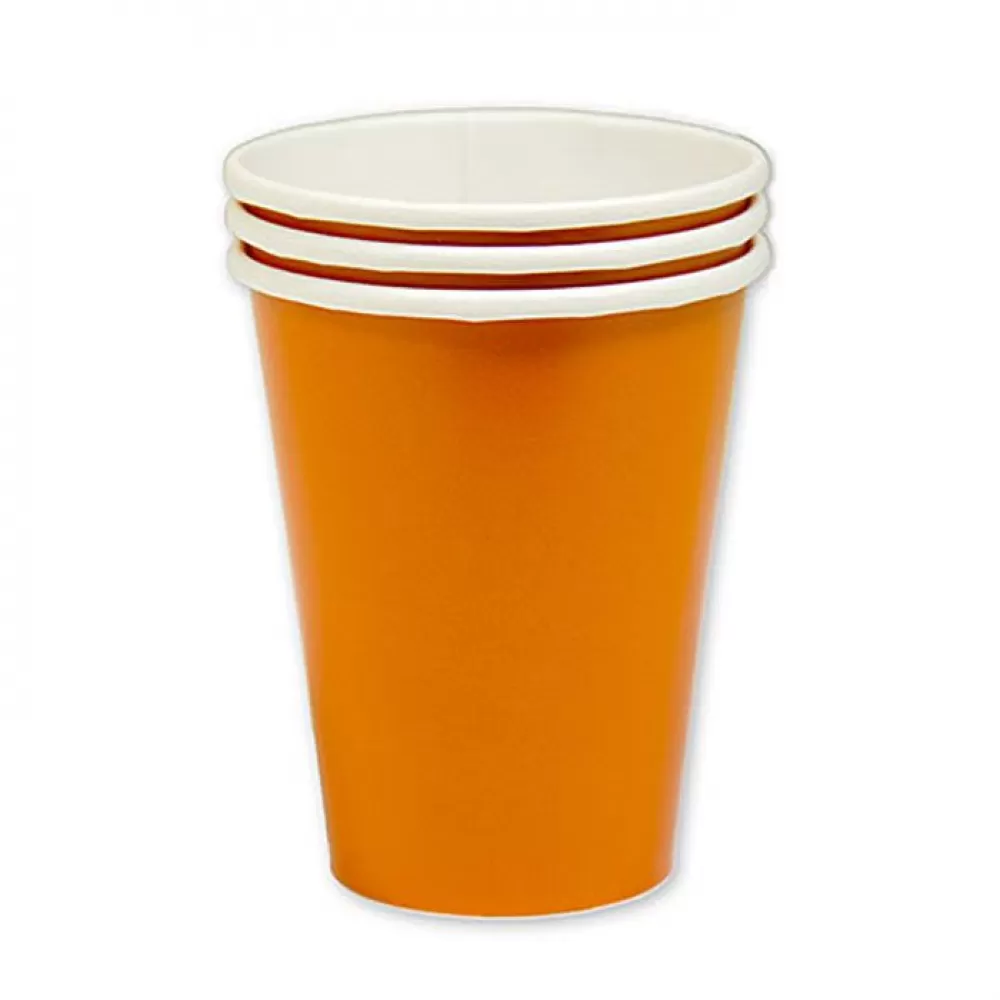 - В наборе 8 бумажных стаканов оранжевого цвета.