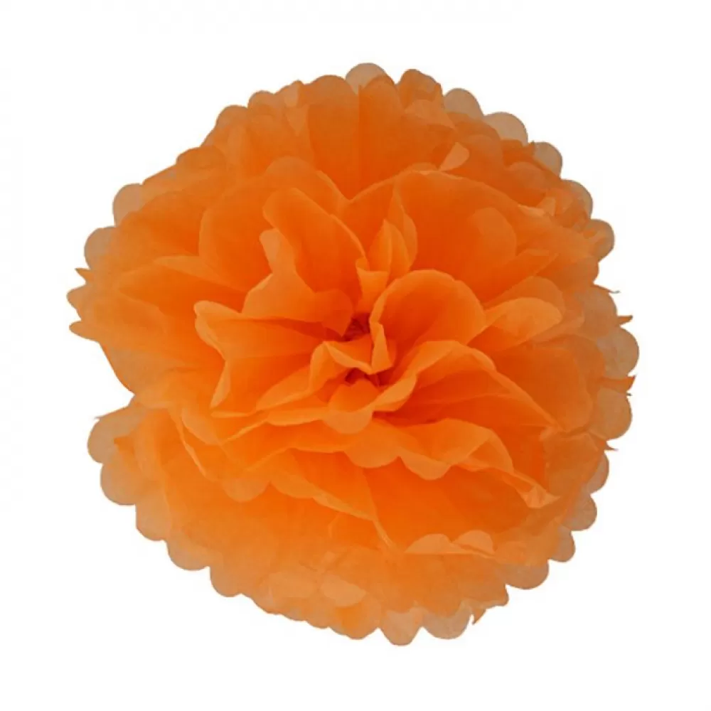 - Помпон оранжевый 20 см из бумаги тишью. Отличное изящное решение для украшения любых праздников.