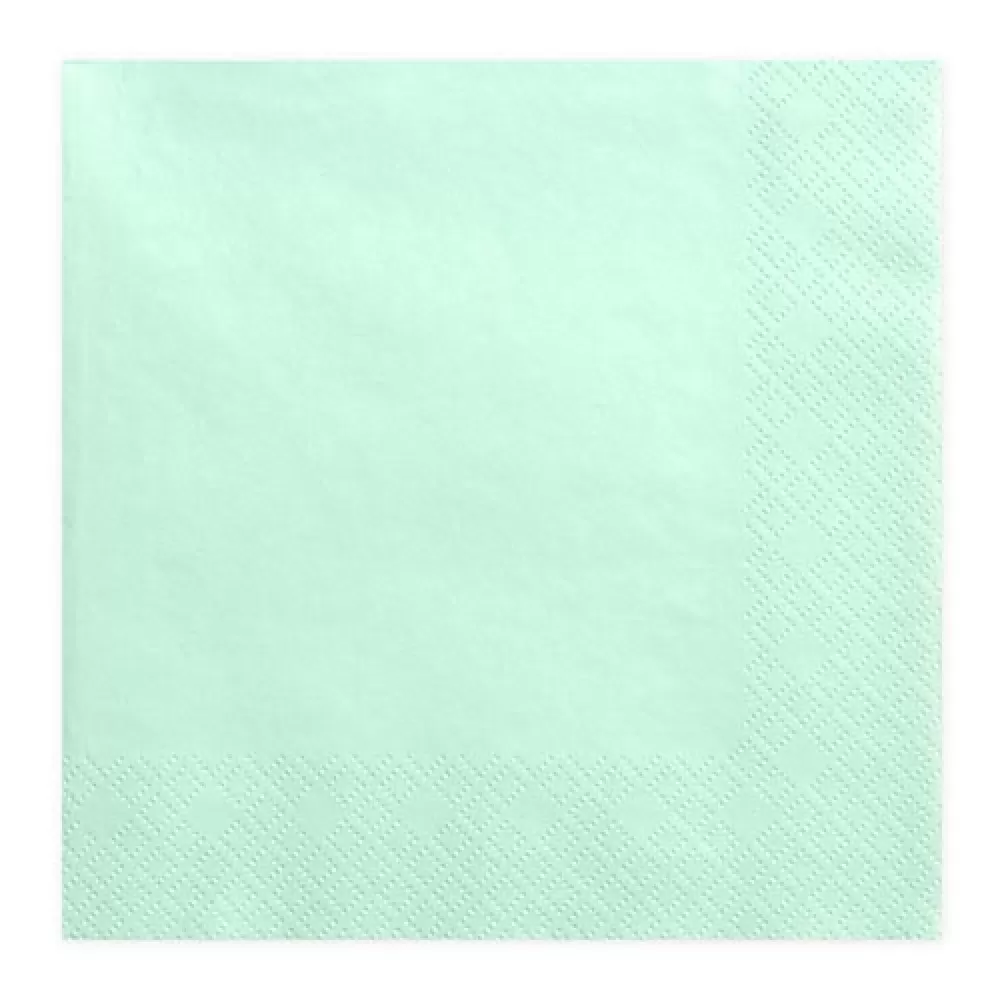 - В упаковке 20 трехслойных салфеток нежного мятного цвета для праздничной сервировки.