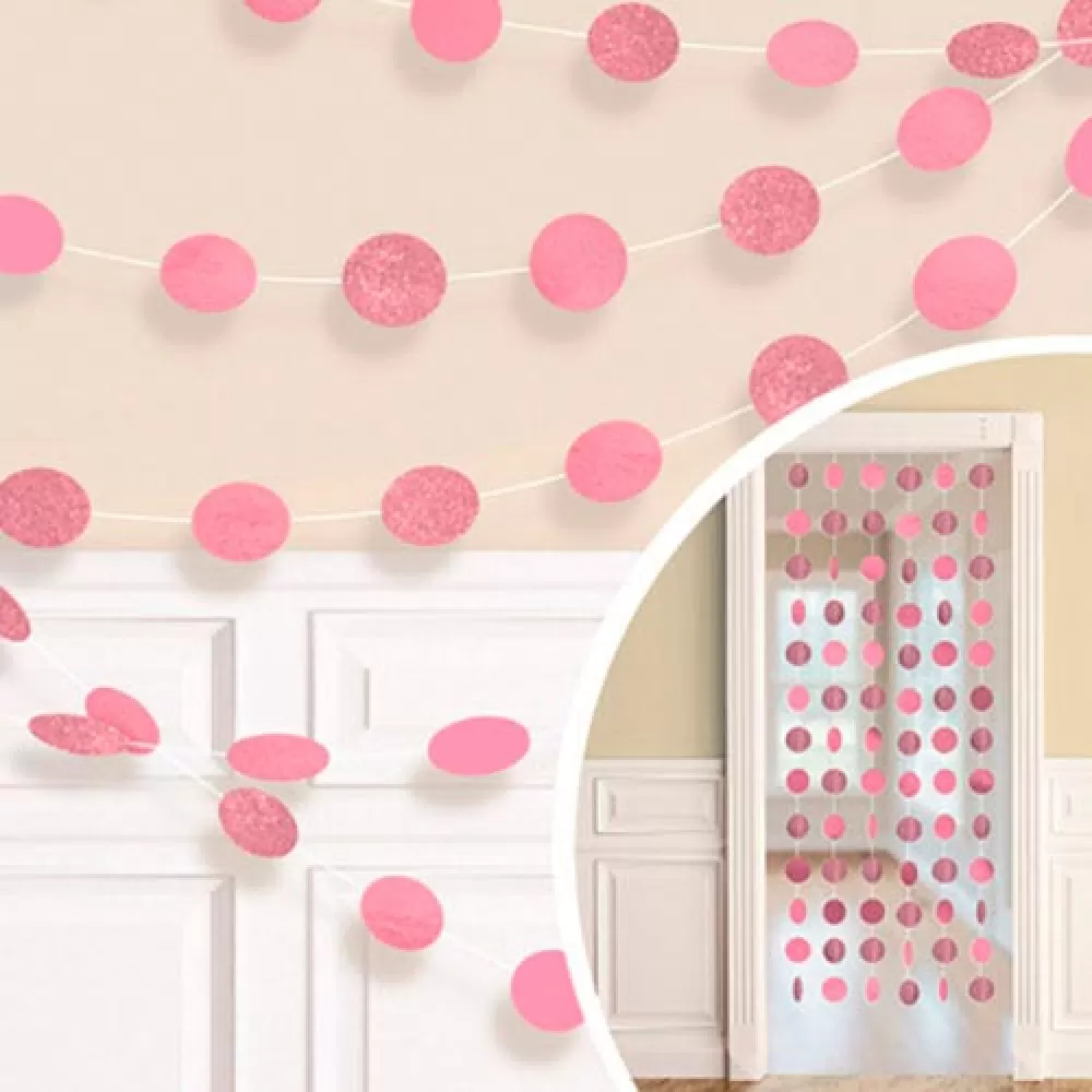- На прозрачной леске собраны блестящие и матовые круги (чередуются) розового цвета.