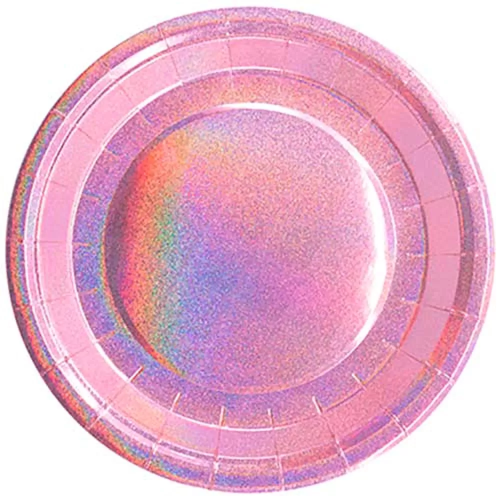 Тарелки розовые голографические (6 шт.)
